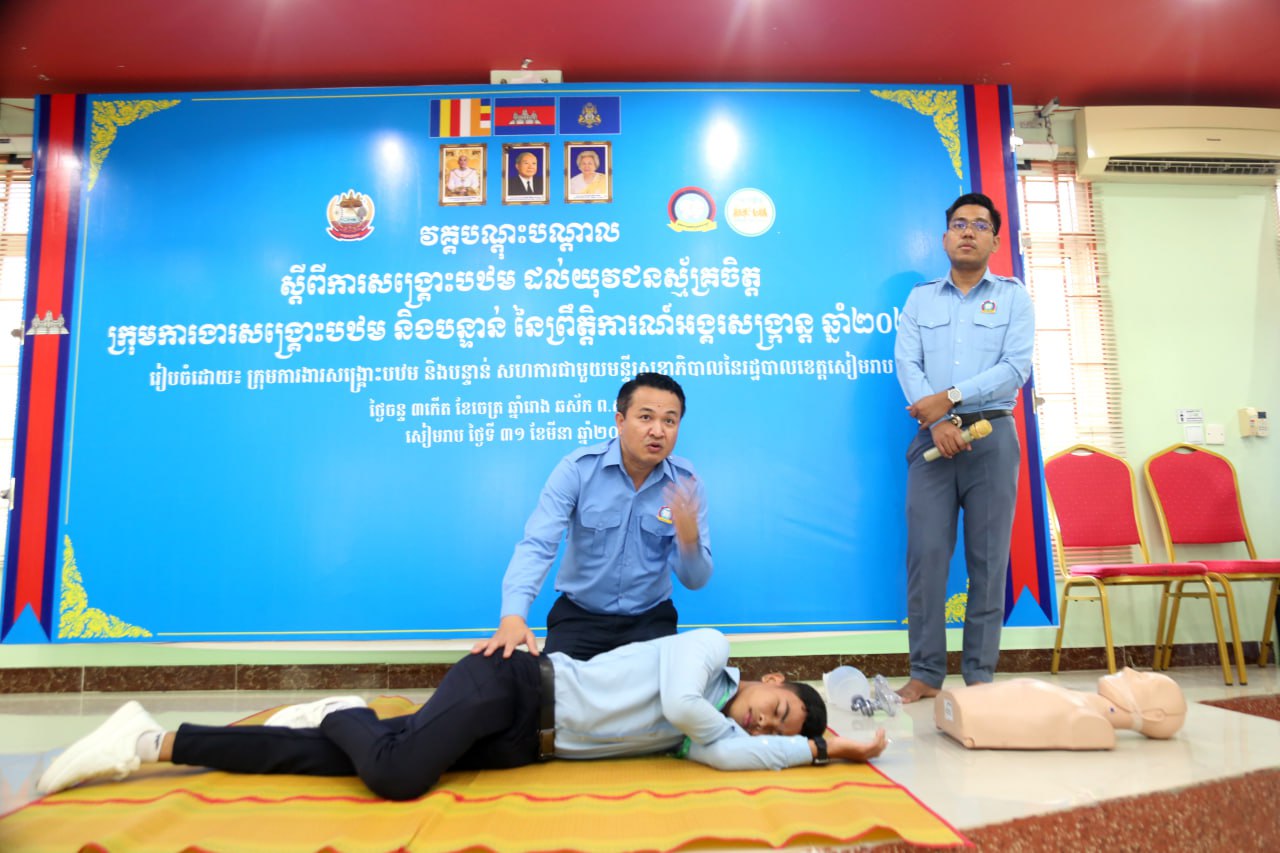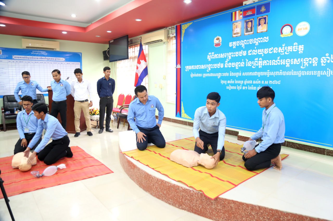 សហការជាមួយមន្ទីរសុខាភិបាលនៃរដ្ឋបាលខេត្ត និងបានការសម្របសម្រួលពីមន្ទីរពេទ្យបង្អែកខេត្តបានរៀបចំវគ្គបណ្តុះបណ្តាលស្តីពីការសង្គ្រោះបឋម និងបន្ទាន់ដល់យុវជនស្ម័គ្រចិត្តចំនួន៥៤នាក់ជានិស្សិតកំពុងសិក្សានៅមហាវិទ្យាល័យសុខាភិបាលនៃសាកលវិទ្យាល័យអង្គរខេត្តសៀមរាប។