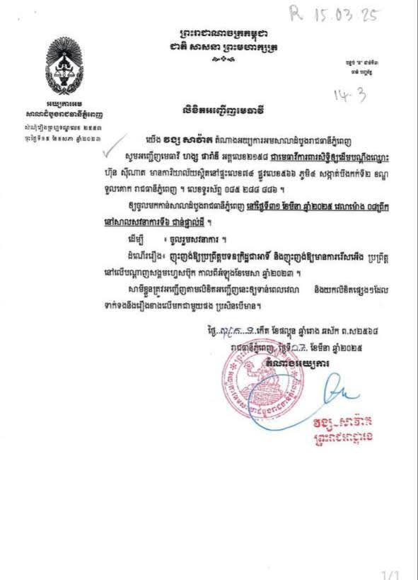 រាជធានីភ្នំពេញ៖ យោងតាមអាខោនហ្វេសប៊ុករបស់លោកជំទាវ ហ៊ុន ស៊ីណាត បានបង្ហោះនៅថ្ងៃទី០៦ ខែឧសភា ឆ្នាំ២០២៥ (១២ម៉ោងមុន) ដែលមានខ្លឹមសារដូចតទៅ៖ សូមជម្រាបសួរដល់ឯកឧត្តម រស់ សារ៉ុម មានឋាន:ស្មើ ទេសរដ្ឋមន្ត្រី ឡើងថ្មី ថាតុលាការបាន បើកសាវនាការ នៅថ្ងៃទី31 ខែ មីនា ឆ្នាំ2025 ក្នុងសំណុំរឿងដែលឯកឧត្តមគំរាម និងជេរប្រមាថខ្ញុំ ការសម្រេចផ្ដន្ទាទោសដាក់ពន្ធនាគារ 18 ខែ និង ពិន័យជាប្រាក់ 5លានរៀលនោះ បានឡើងធំហើយកុំភ្លេចមកបង់ប្រាក់សងជំងឺចិត្តខ្ញុំផងទាន ។ ខ្មែរធ្វើបាន