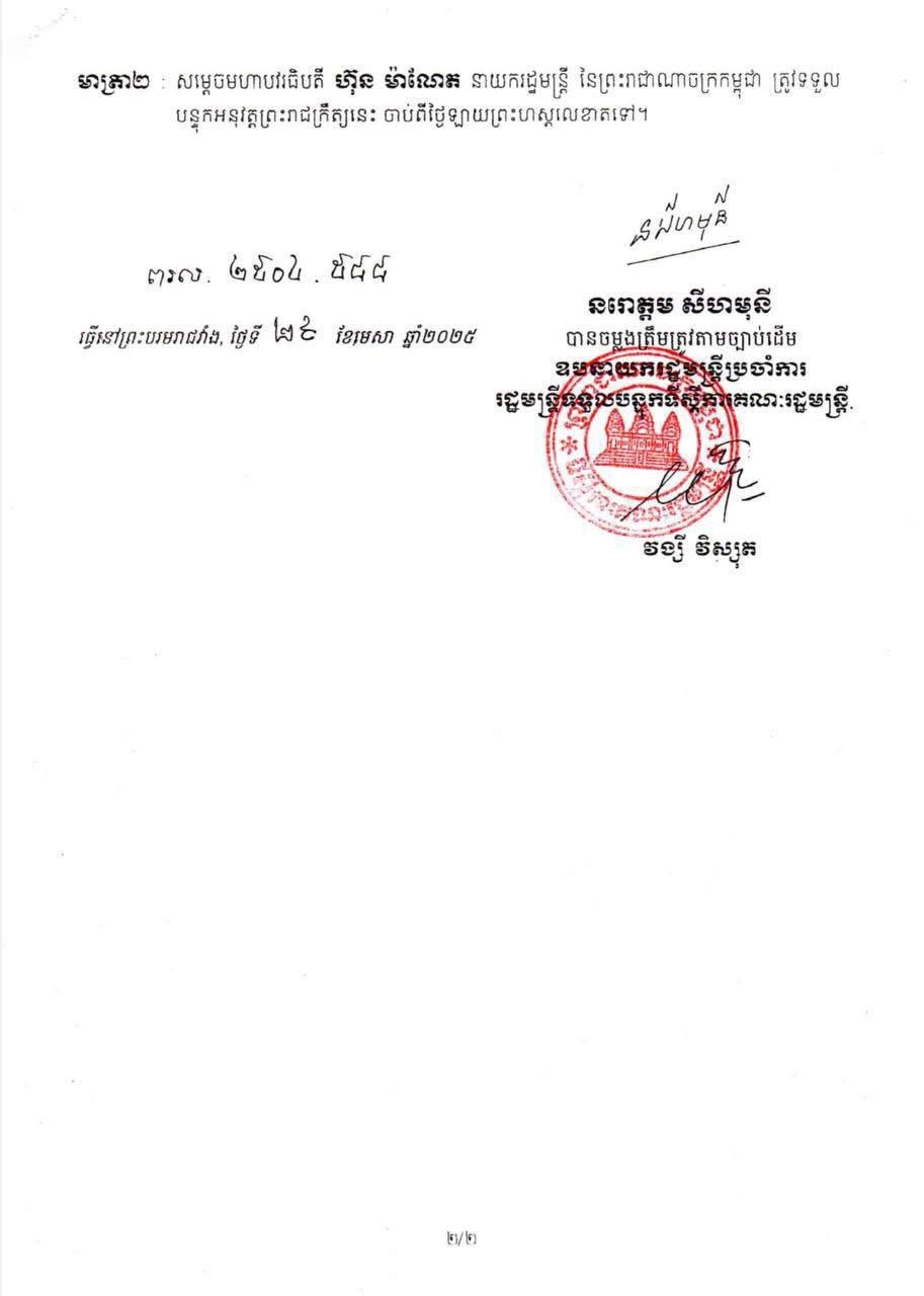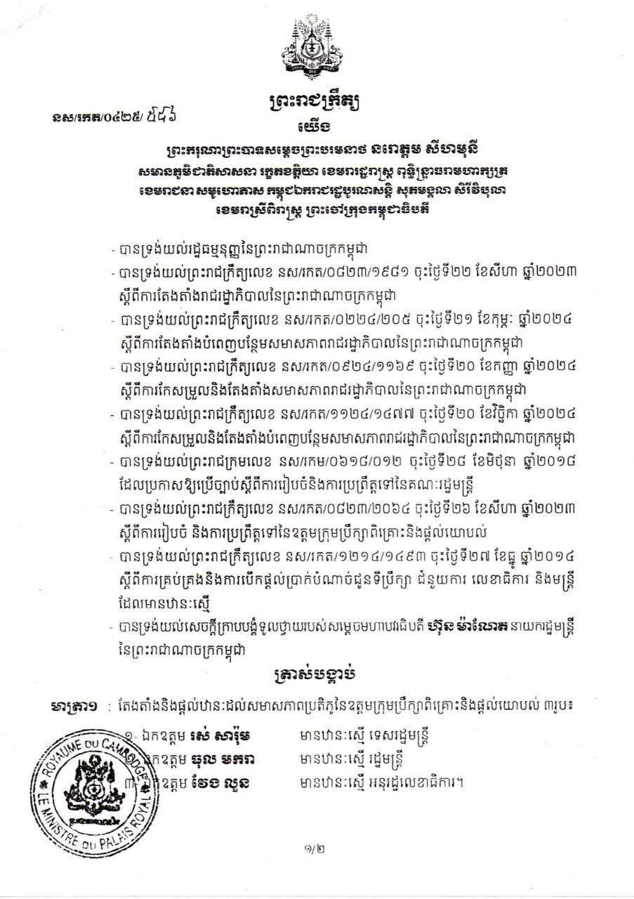 យោងតាមព្រះរាជក្រឹត្យលេខ នស/រកត/០៤២៥/៥៨៦ ចុះថ្ងៃទី២៩ ខែមេសា ឆ្នាំ២០២៥ ស្តីពីតែងតាំងនិងផ្តល់ឋានៈដល់សមាសភាពប្រតិភូ នៃឧត្តមក្រុមប្រឹក្សាពិគ្រោះ និងផ្តល់យោបល់ចំនួន ៣រូបរួមមាន៖
