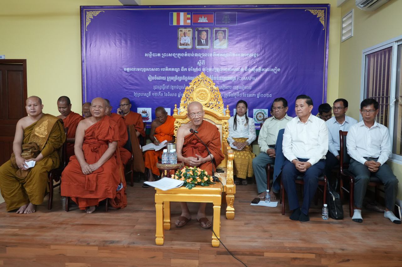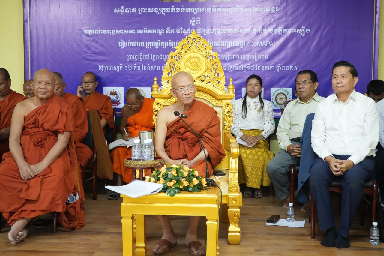 ខេត្តសៀមរាប៖ នៅក្នុងពិធីបើកសន្និបាតព្រះសង្ឃ ក្នុងតំបន់ឧទ្យានបេតិកភណ្ឌពិភពលោកអង្គរ ស្តីពី “វត្តអារាមពុទ្ធសាសនា បេតិកភណ្ឌ ទឹក បរិស្ថាន បម្រែបម្រួលអាកាសធាតុ និងសុវត្ថិភាពស្បៀង” ក្រោមកិច្ចផ្តួចផ្តើមរបស់ក្រុមប្រឹក្សាកិច្ចការវត្តអារាមនៅតំបន់ឧទ្យានអង្គរនៃសាលាគណខេត្តសៀមរាប នាព្រឹកថ្ងៃទី០៨ ខែឧសភា ឆ្នាំ២០២៥ វត្តរាជបូណ៍ លោក លី សារី អភិបាលរងខេត្តសៀមរាបបានមានប្រសាសន៍ធ្វើការសំណូមពរដល់ព្រះគ្រូចៅអធិការវត្តទាំងអស់ដែលមាននៅក្នុងបរិវេណឧទ្យានអង្គរ អាជ្ញាធរមូលដ្ឋានទាំងអស់ ចូលរួមបំពេញតួនាទីភារកិច្ចរបស់ខ្លួន ក្នុងការការពារតំបន់រមណីដ្ឋានអង្គរ សម្បត្តិបេតិកភណ្ឌជាតិ និងវិស័យផ្សេងៗ ក្នុងខេត្តសៀមរាប ឱ្យកាន់តែល្អប្រសើរជាលំដាប់។