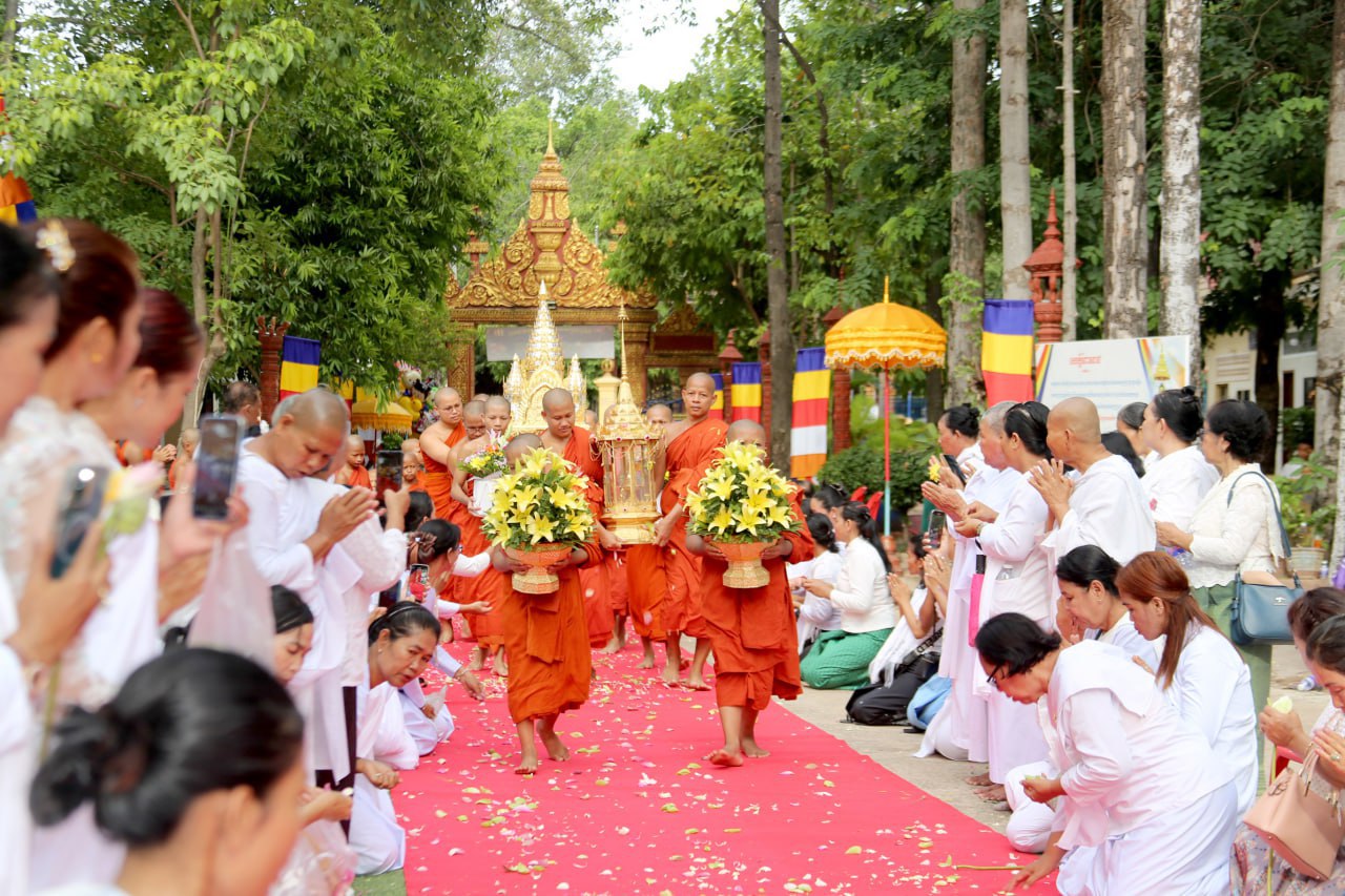 ខេត្តសៀមរាប៖ នៅរសៀលថ្ងៃទី១០ ខែ កក្កដាឆ្នាំ២០២៥ ព្រះគ្រូចៅអធិការវត្តដំណាក់នៅក្នុងក្រុងសៀមរាបខេត្តសៀមរាប រួមជាមួយព្រះសង្ឃ លោកអាចារ្យ គណៈកម្មការវត្ត ដូនជី តាជី ពុទ្ធបរិស័ទ លោកគ្រូអ្នកគ្រូ សិស្សានុសិស្ស ប្រមាណជាង២ពាន់អង្គ/នាក់ បានប្រារព្ធ ពិធីបុណ្យ អាសាឡ្ហបូជានិងថ្ងៃចូលព្រះវស្សា ដើម្បីរំលឹកដល់ព្រឹត្តិការណ៍សំខាន់ៗទាំង៥របស់ព្រះពុទ្ធ ដោយមានការរៀបចំជាក្បួនដើរដង្ហែរបុណ្យអាសាឡ្ហបូជា តាមដងផ្លូវសំខាន់ៗក្នុងក្រុងសៀមរាបនិងបូជាផ្កាកម្រងទៀនធូប ព្រមទាំងប្រគេនទៀនព្រះវស្សា និងគ្រឿងបរិក្ខាផ្សេងៗ មានសំពត់វស្សិកសាដកជាដើម និងបាននិមន្តដើរប្រទក្សិណព្រះគន្ឋកុដិ ៣ជុំជាមុន ទើបនាំទៀនចូលទៅ គេវេរទៀនរួចទើបអុជទៀននោះជាក្រោយ ។
