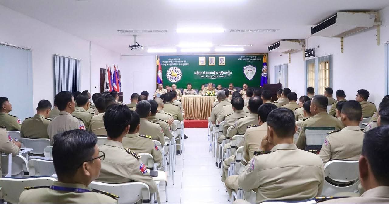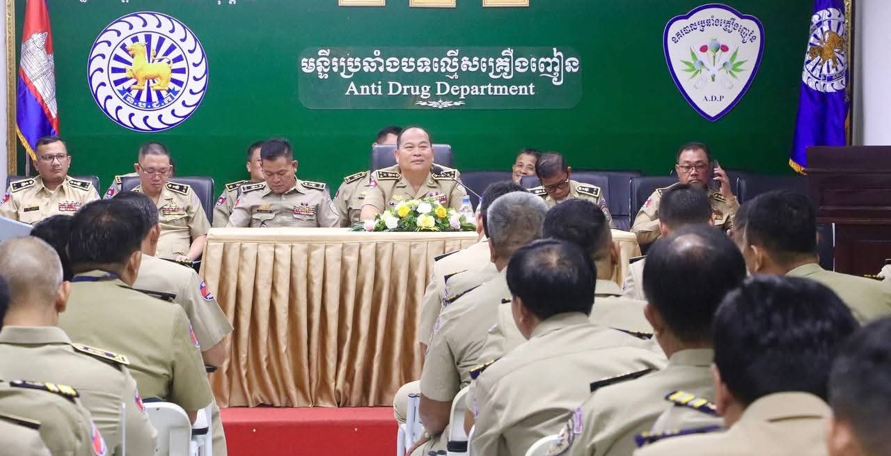 រាជធានីភំ្នពេញ៖ ឯកឧត្តម ឧត្តមសេនីយ៍ឯក ឃឹង សារ៉ាត់ នាយកមន្ទីរប្រឆាំងគ្រឿងញៀន នៅរសៀលថ្ងៃទី១៤ ខែកក្កដា ឆ្នាំ២០២៥ បានដឹកនាំកិច្ចប្រជុំបូកសរុបលទ្ធផលការងារប្រចាំខែមិថុនា និងលើកទិសដៅការងារបន្តខែកក្កដា ឆ្នាំ២០២៥ នៅសាលប្រជុំមន្ទីរប្រឆាំងបទល្មើសគ្រឿងញៀន នៃអគ្គស្នងការដ្ឋាននគរបាលជាតិ។