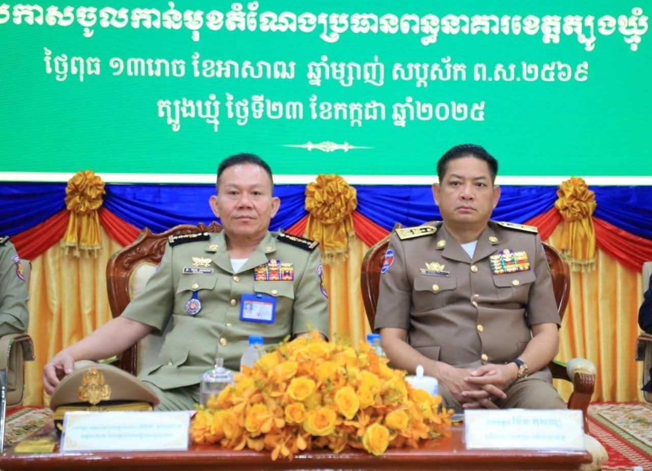 ខេត្តត្បូងឃ្មុំ ៖ នៅថ្ងៃទី២៣ ខែកក្កដា ឆ្នាំ២០២៥ នៅសាលប្រជុំ (គ) សាលាខេត្តត្បូងឃ្មុំ ឯកឧត្តមឧត្តមអគ្គានុរក្សថ្នាក់លេខ១ ឈន សាណាត អគ្គនាយក នៃអគ្គនាយកដ្ឋានពន្ធនាគារ នៃក្រសួងមហាផ្ទៃ និងឯកឧត្តម ប៉ែន កុសល្យ អភិបាលនៃគណៈអភិបាលខេត្តត្បូងឃ្មុំ បានអញ្ជើញជាអធិបតីភាព ក្នុងពិធីប្រកាសផ្ទេរ និងចូលកាន់មុខតំណែងប្រធានពន្ធនាគារខេត្តត្បូងឃ្មុំ ។