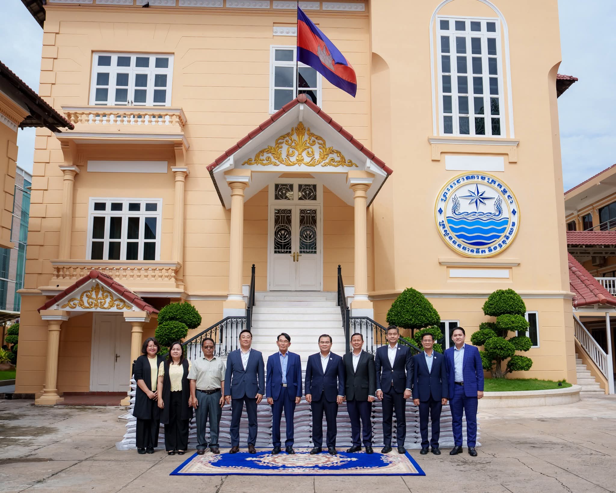 ជាមួយគ្នានេះ តំណាងក្រុមហ៊ុនកូរ៉េ បាននាំយកអង្ករចំនួន ៥តោនប្រគល់ជូនក្រសួងធនធានទឹក និងឧតុនិយម ដើម្បីប្រើប្រាស់ជាជំនួយមនុស្សធម៌នានាផងដែរ ។