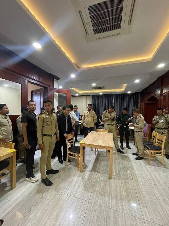 រាជធានីភ្នំពេញ ៖ កម្លាំងចម្រុះនៃរដ្ឋបាលរាជធានីភ្នំពេញ សមត្ថកិច្ចនគរបាលជំនាញ អាជ្ញាធរខណ្ឌ និងដោយមានការចូលរួមពីតំណាងអយ្យការអមសាលាដំបូងរាជធានីភ្នំពេញ នៅថ្ងៃទី១៥ ខែកញ្ញា ឆ្នាំ២០២៥ វេលាម៉ោង១៣:០០ បានចុះត្រួតពិនិត្យទីតាំងសង្ស័យមួយកន្លែងពាក់ព័ន្ធនឹងបទល្មើស Online Scam និងការស្នាក់នៅប្រមូលម្តុំជនបរទេសខុសច្បាប់ នៅក្នុងទីតាំងអគារខុនដូរ HANA អគារលេខ១៤៦៩ ផ្លូវ១០៨៩ ភូមិរោងចក្រ១ សង្កាត់គោកឃ្លាង ខណ្ឌសែនសុខ រាជធានីភ្នំពេញ ដែលមានកម្ពស់ ៧ជាន់។