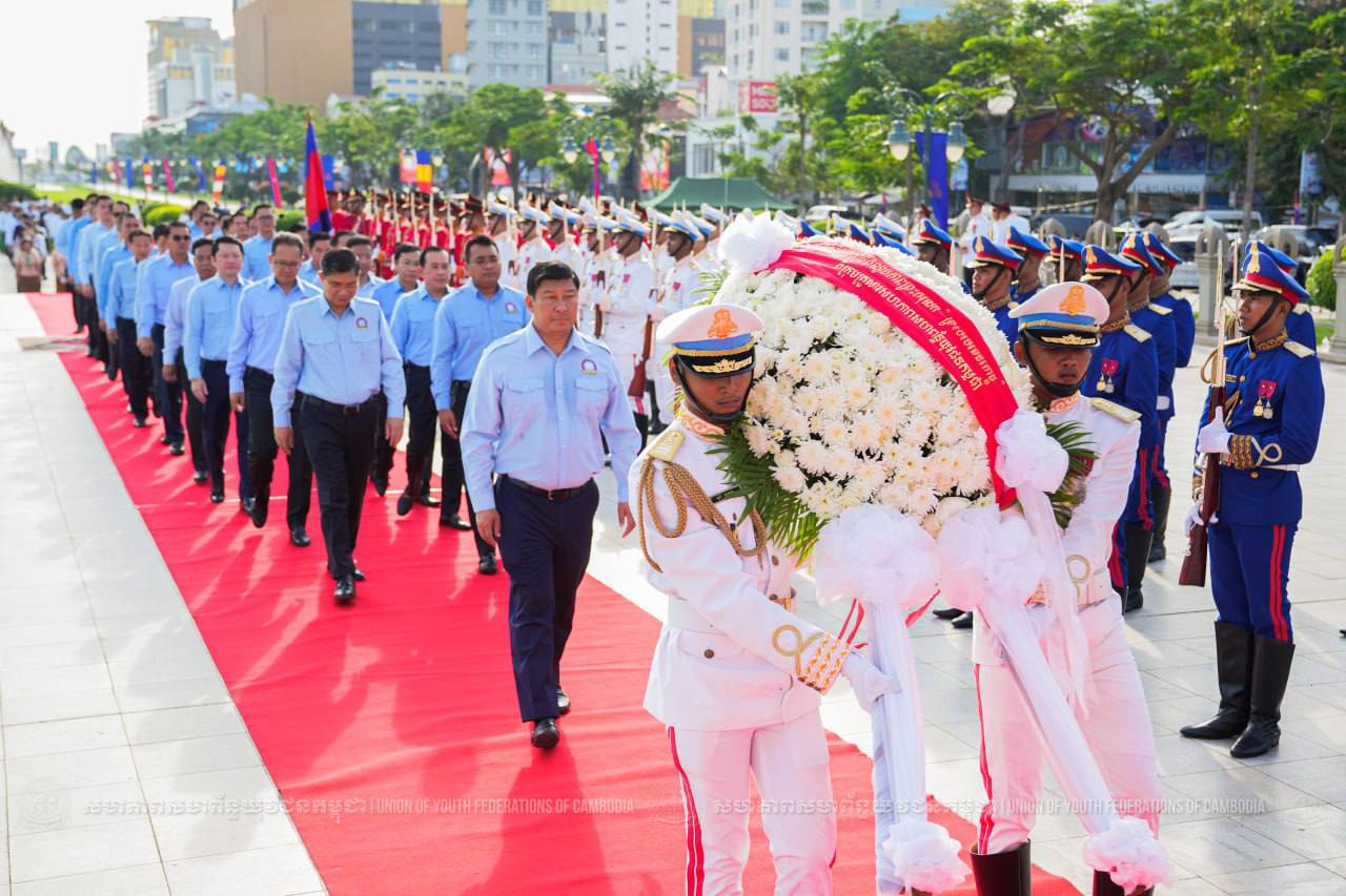 នាព្រឹកថ្ងៃទី ១៥ ខែតុលា ឆ្នាំ២០២៥ ឯកឧត្តម សាយ សំអាល់ អនុប្រធានសហភាពសហព័ន្ធយុវជនកម្ពុជា និងជាតំណាង ឯកឧត្តមហ៊ុន ម៉ានី ប្រធានសហភាពសហព័ន្ធយុវជនកម្ពុជា បានអញ្ជើញទៅគោរពព្រះវិញ្ញាណក្ខន្ធ និងថ្វាយ កម្រងផ្កានៅស្ថូបព្រះបរមរូប នាឱកាស ខួបលើកទី១៣ នៃព្រះរាជ ពិធីគោរពព្រះវិញ្ញាណក្ខ័ន្ធ ព្រះករុណា ព្រះបាទសម្តេចព្រះ នរោត្តម សីហនុ ព្រះមហាវីរក្សត្រ ព្រះវររាជបិតា ឯករាជ្យ បូរណភាពទឹកដី និងឯកភាពជាតិខ្មែរ «ព្រះបរមរតនកោដ្ឋ»។
