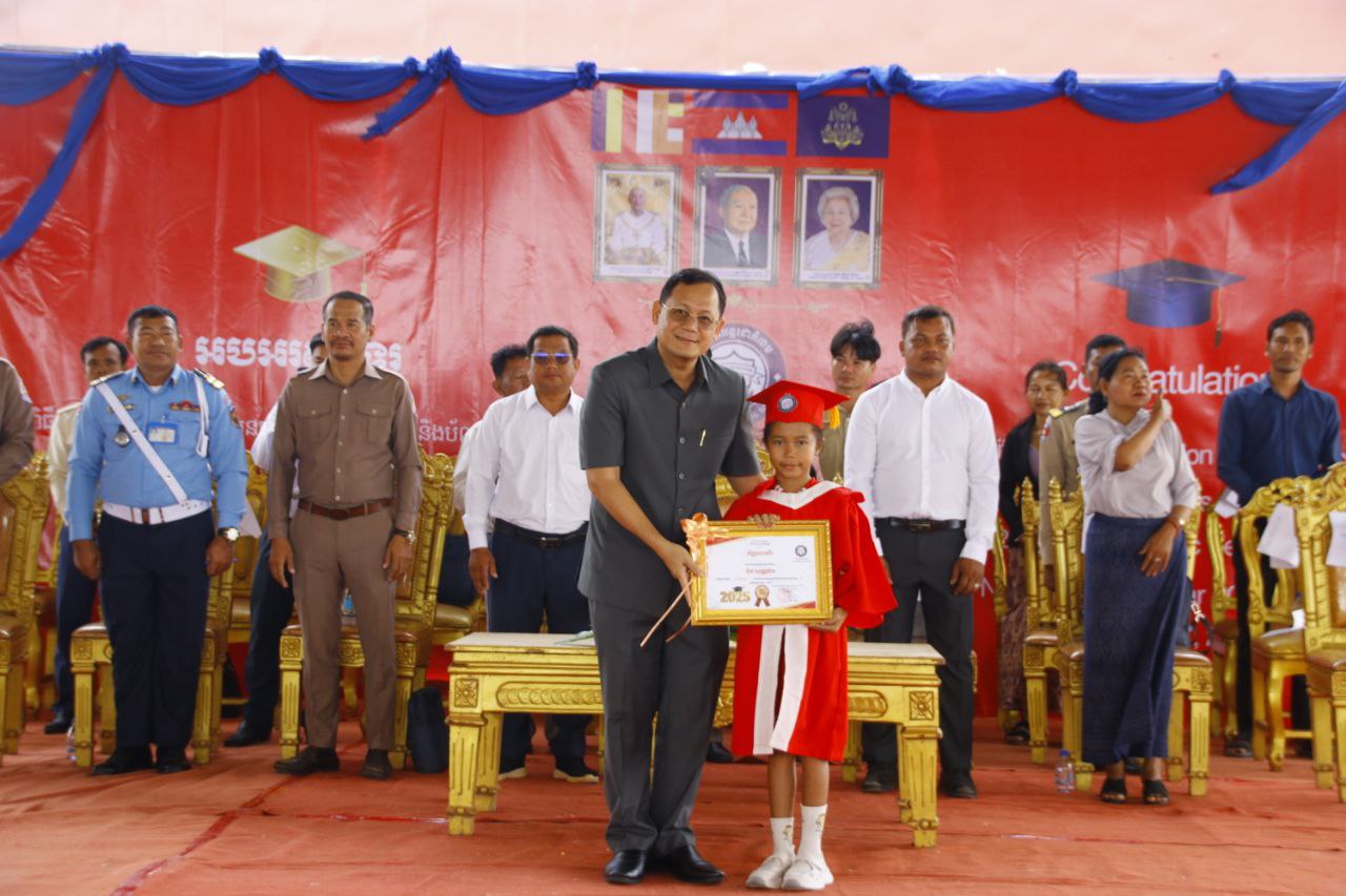 លោកអភិបាលរងខេត្តបន្តថា រាជរដ្ឋាភិបាលកម្ពុជា ក្រោមការដឹកនាំប្រកបដោយគតិបណ្ឌិតរបស់ សម្តេចមហាបវរធិបតី ហ៊ុន ម៉ាណែត នាយករដ្ឋមន្រ្តី នៃព្រះរាជាណាចក្រកម្ពុជា បាននឹងកំពុងយកចិត្តទុកដាក់យ៉ាងខ្លាំង ក្នុងការកសាង អភិវឌ្ឍធន ធានមនុស្សលើគ្រប់ផ្នែក ប្រកបដោយគុណភាព និងមានគុណធម៌ល្អប្រពៃ ដើម្បីឆ្លើយតបទៅនឹងសំណូមពរ នៃការអភិវឌ្ឍសង្គម សេដ្ឋកិច្ច ដើម្បីកសាងកម្ពុជាឱ្យក្លាយជាប្រទេសរីកចម្រើន ជឿនលឿន ឈរលើឆាកជាតិ និងអន្តរជាតិ។
