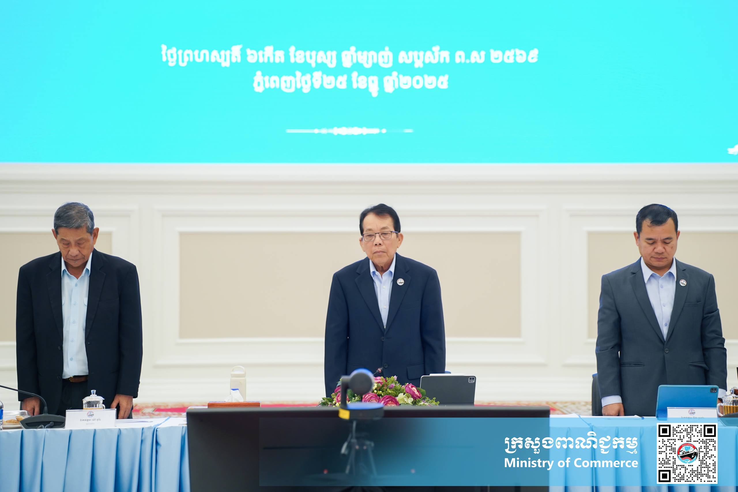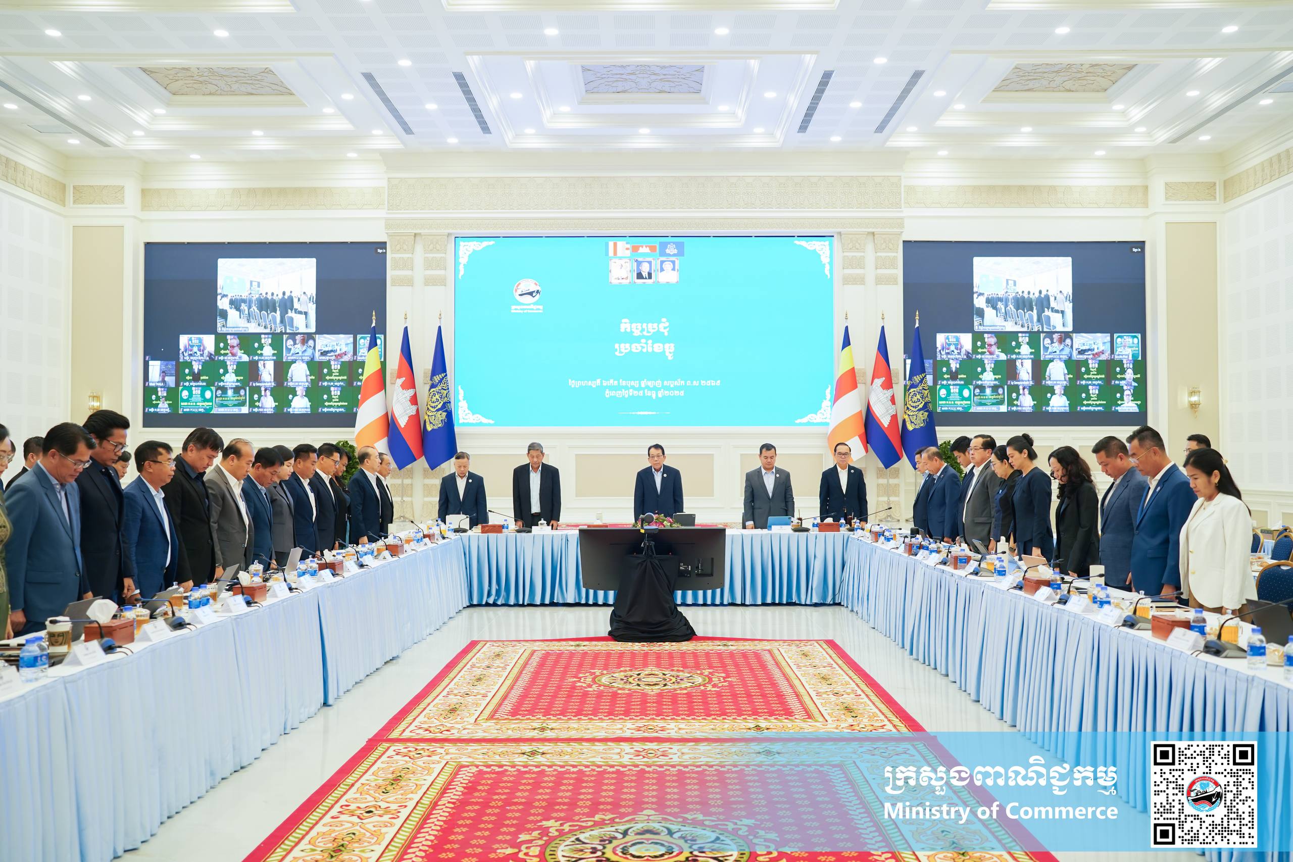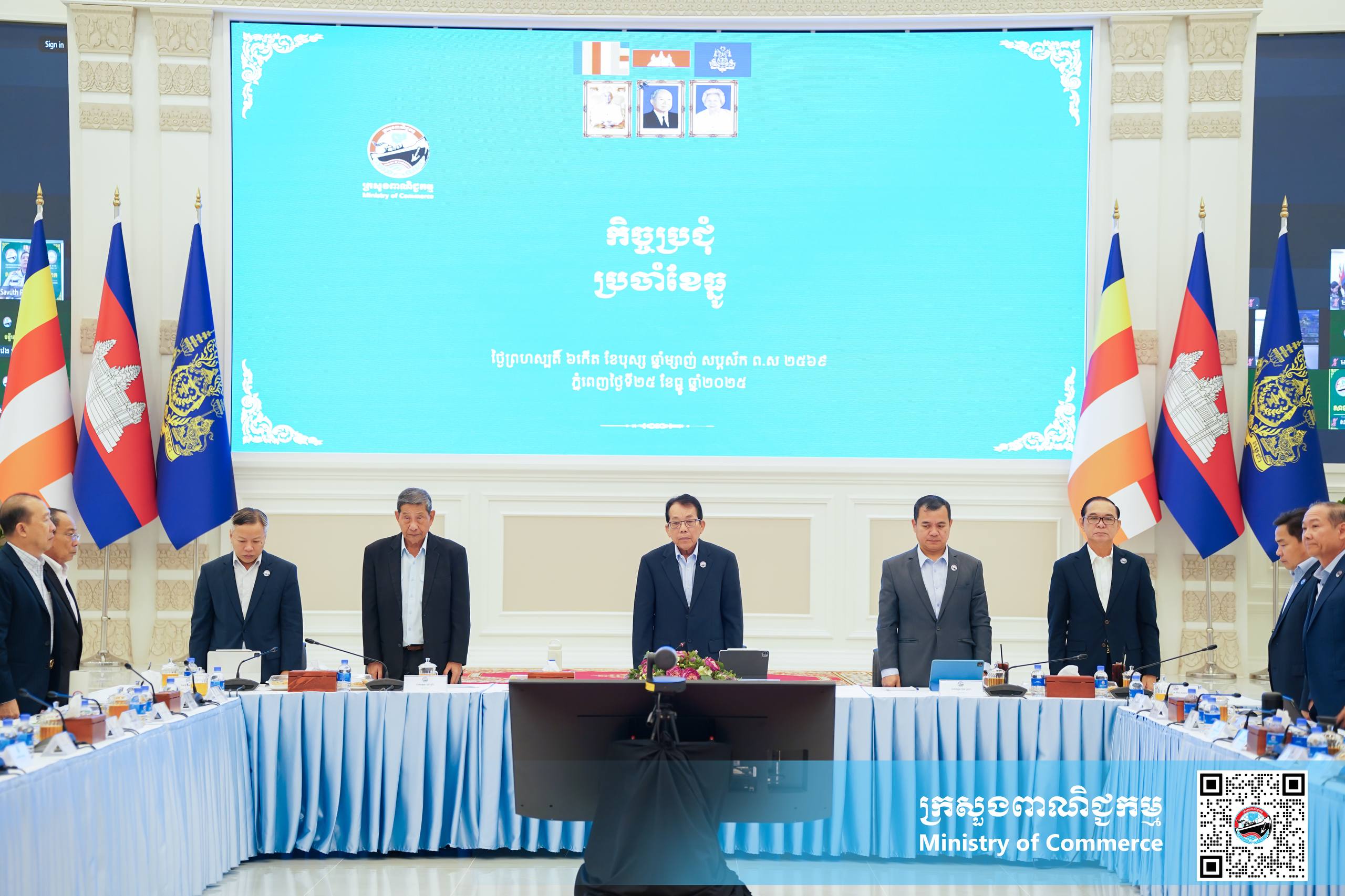 រាជធានីភ្នំពេញ៖ នាព្រឹកថ្ងៃព្រហស្បតិ៍ ទី២៥ ខែធ្នូ ឆ្នាំ២០២៥ នៅទីស្ដីការក្រសួងពាណិជ្ជកម្ម ឯកឧត្តម កឹម ស៊ីថន រដ្ឋលេខាធិការប្រចាំការក្រសួងពាណិជ្ជកម្ម តំណាងដ៏ខ្ពង់ខ្ពស់របស់ លោកជំទាវ ចម និម្មល រដ្ឋមន្ត្រីក្រសួងពាណិជ្ជកម្ម បានអញ្ជើញដឹកនាំកិច្ចប្រជុំប្រចាំខែរបស់ក្រសួងពាណិជ្ជកម្ម ដែលមានវត្តមានចូលរួមពី ឯកឧត្តម លោកជំទាវរដ្ឋលេខាធិការ ឯកឧត្តម លោកជំទាវអនុរដ្ឋលេខាធិការ ឯកឧត្តមអគ្គនាយក លោកជំទាវអគ្គាធិការ លោក-លោកស្រីអគ្គនាយករង លោក-លោកស្រីអគ្គាធិការរង លោកប្រធាននាយកដ្ឋាន-វិទ្យាស្ថាន លោក-លោកស្រីអនុប្រធាននាយកដ្ឋាន-វិទ្យាស្ថាន លោក-លោកស្រីប្រធាន និងអនុប្រធានមន្ទីរ និងសាខា ក.ប.ប. រាជធានី-ខេត្តទាំងអស់ចំណុះឱ្យក្រសួងពាណិជ្ជកម្មផងដែរ។